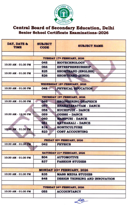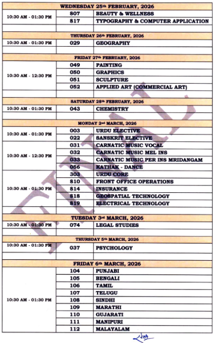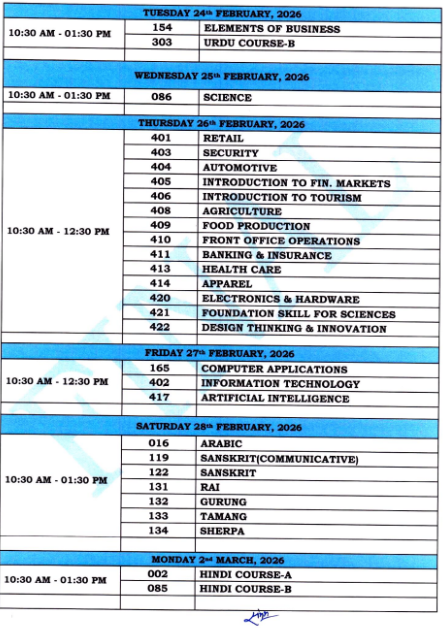 | 26 Feb 2026 | Thursday | 10:30 AM – 12:30 PM | Vocational / Other Elective Subjects | |