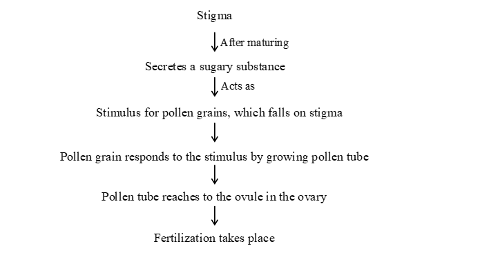 In the above discussed flowchart, the sugary secretion by stigma acts as chemical to which plants show tropic movement.