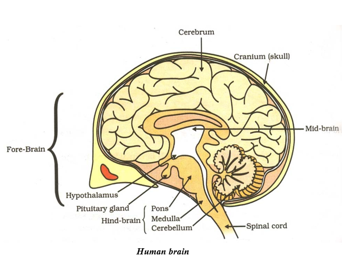 Q29. Draw a labeled diagram of human brain and write the functions of the following parts: