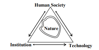 - The process of transformation of things available in an environment involves an interdependent relationship between nature, technology and institutions.