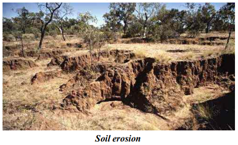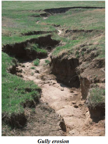 - Gully erosion: Erosion predominant along steep slopes caused by the action of rain water.