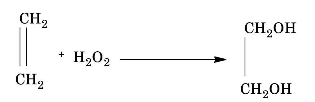Hydrogen peroxide reacts with alkenes to form glycols.