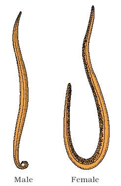 2. | Two equal chitinous spicules (penial setae) project through cloaca. | Spicules absent. |