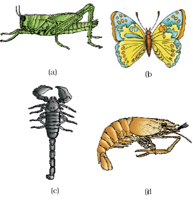 (a) Locust (b) Butterfly (c) Scorpion (d) Prawn