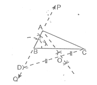 - With B as centre and any suitable radius, draw an arc which cuts BC at point D.