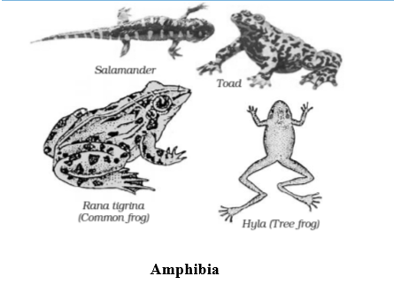 E.g., Rana tigrina (common Indian frog), Bufo (toad), Hyla (tree frog), Necturus (mud puppy), Salamandra (spotted salamander) etc.