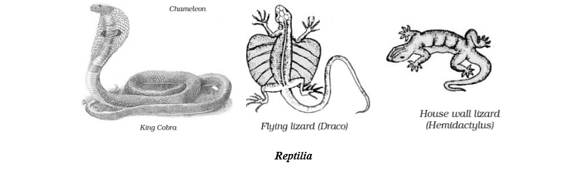 E.g., Hemidactylus (wall lizard), Chamaeleon, Draco (flying lizard), Python (ajgar), Naja (cobra).