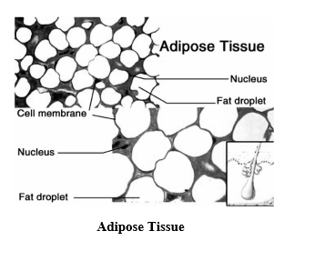 - Formed by fat cells or adipocytes which are round cells containing large droplets of fat that almost fills the cell.
