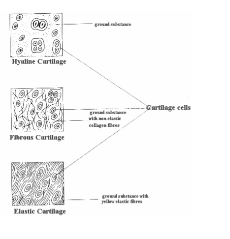 - Non-elastic Cartilage– Example: nose cartilage, inter-vertebral discs.