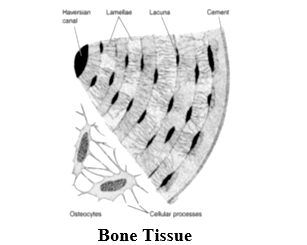 - Each bone cell is enclosed in a small cavity called the lacuna.