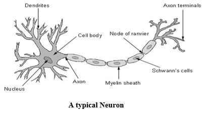 - Cell body or cyton, Dendron and axons.